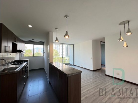 Sala comedor y cocina integral. El balcón es perfecto para disfrutar de la vista y el clima agradable de Sabaneta.