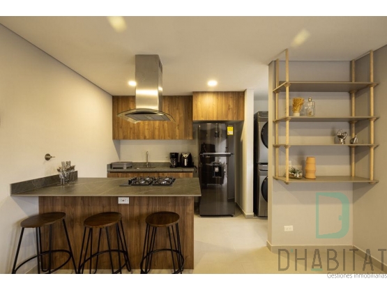 Sala comedor cocina abierta con zona de ropas